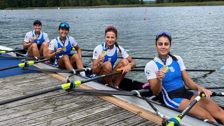 Κατά την πρώτη ημέρα των αγώνων οι Ζωή Φίτσιου και Ευαγγελία Αναστασιάδου πήραν την πρώτη θέση και το χρυσό μετάλλιο στο διπλό σκιφ.