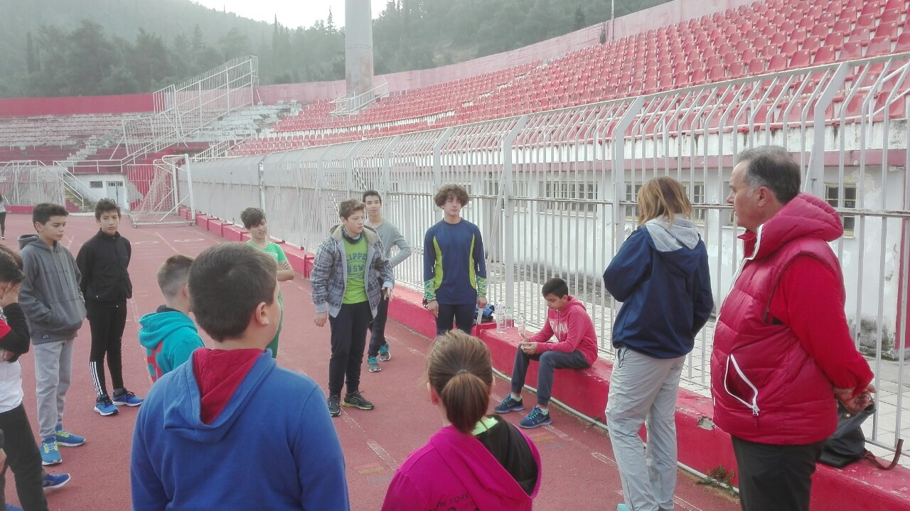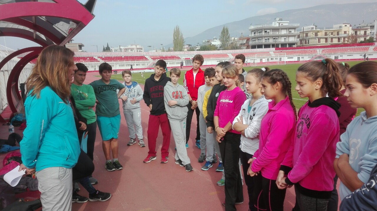 Αθλητές από τον ΝΟΒΑ παρακολουθούν την κ. Γιαννιού